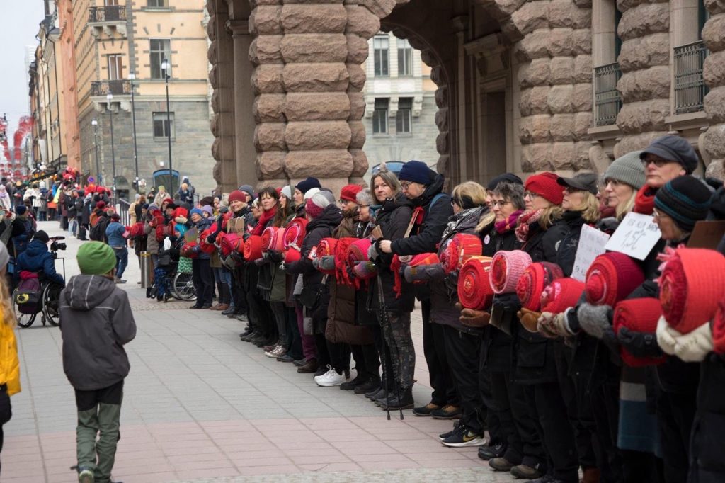 Mycket av arbetet som ledde fram till manifestationen och bilder och filmer från den 21 april finns att se på ”Stickprojektets” Instagram: https://www.instagram.com/stickaforklimatet/