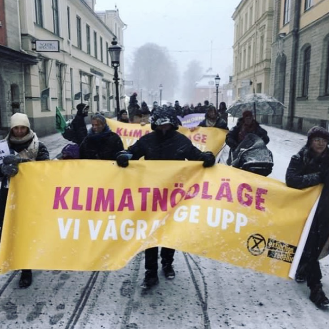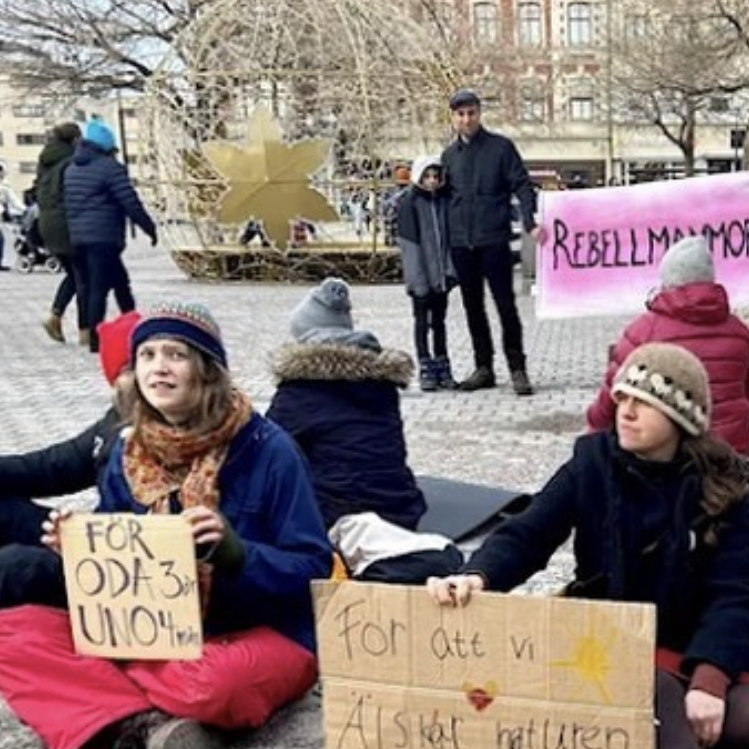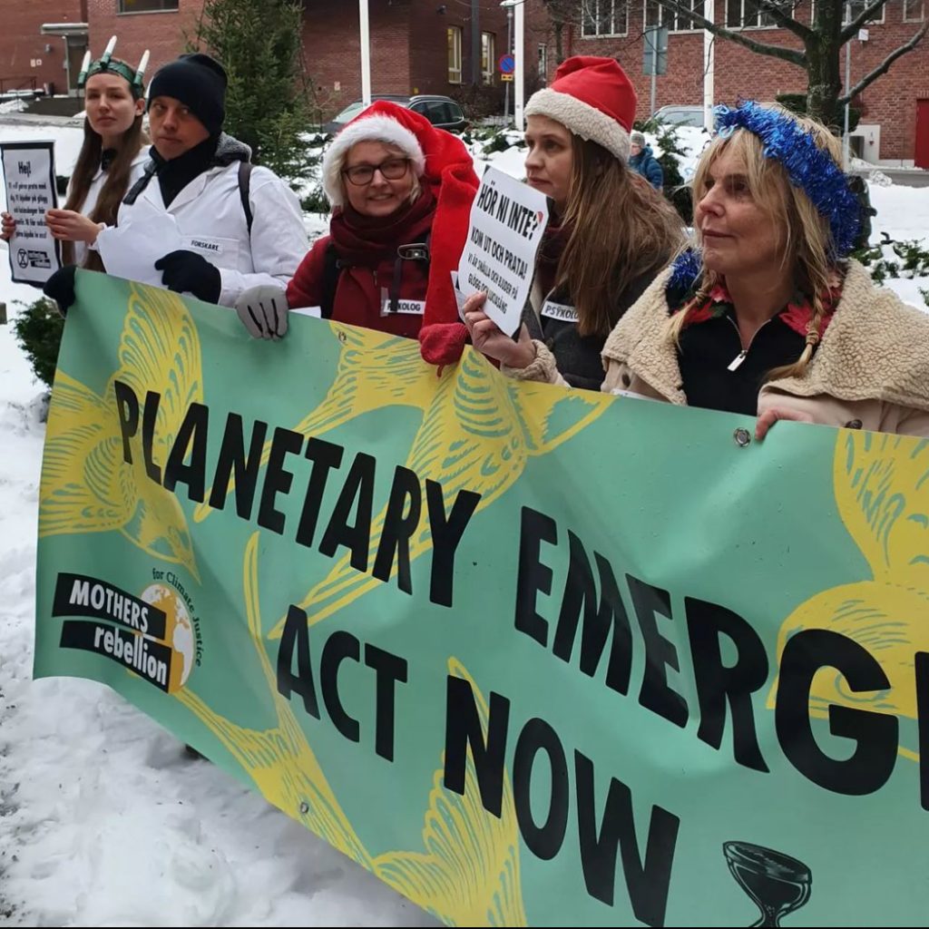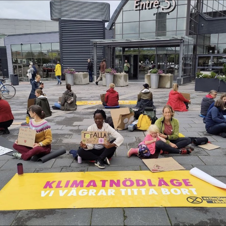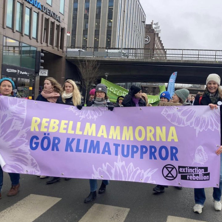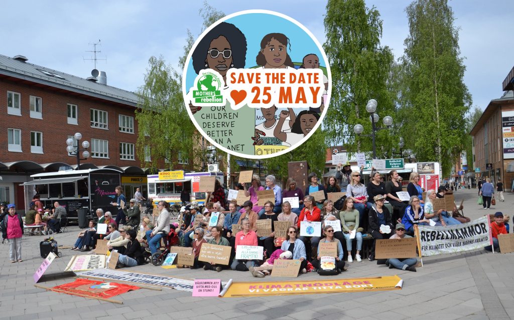 Rebellmammor i ca 29 städer och orter deltog i Mothers* Rebellions femte globala protest den 25 maj. Fokus för den här demonstrationen var situationen i Afrika, som drabbas oproportionerligt hårt av klimatkrisen. Ovan bild från Umeå. Se bilder från demonstrationerna runtom i världen här.