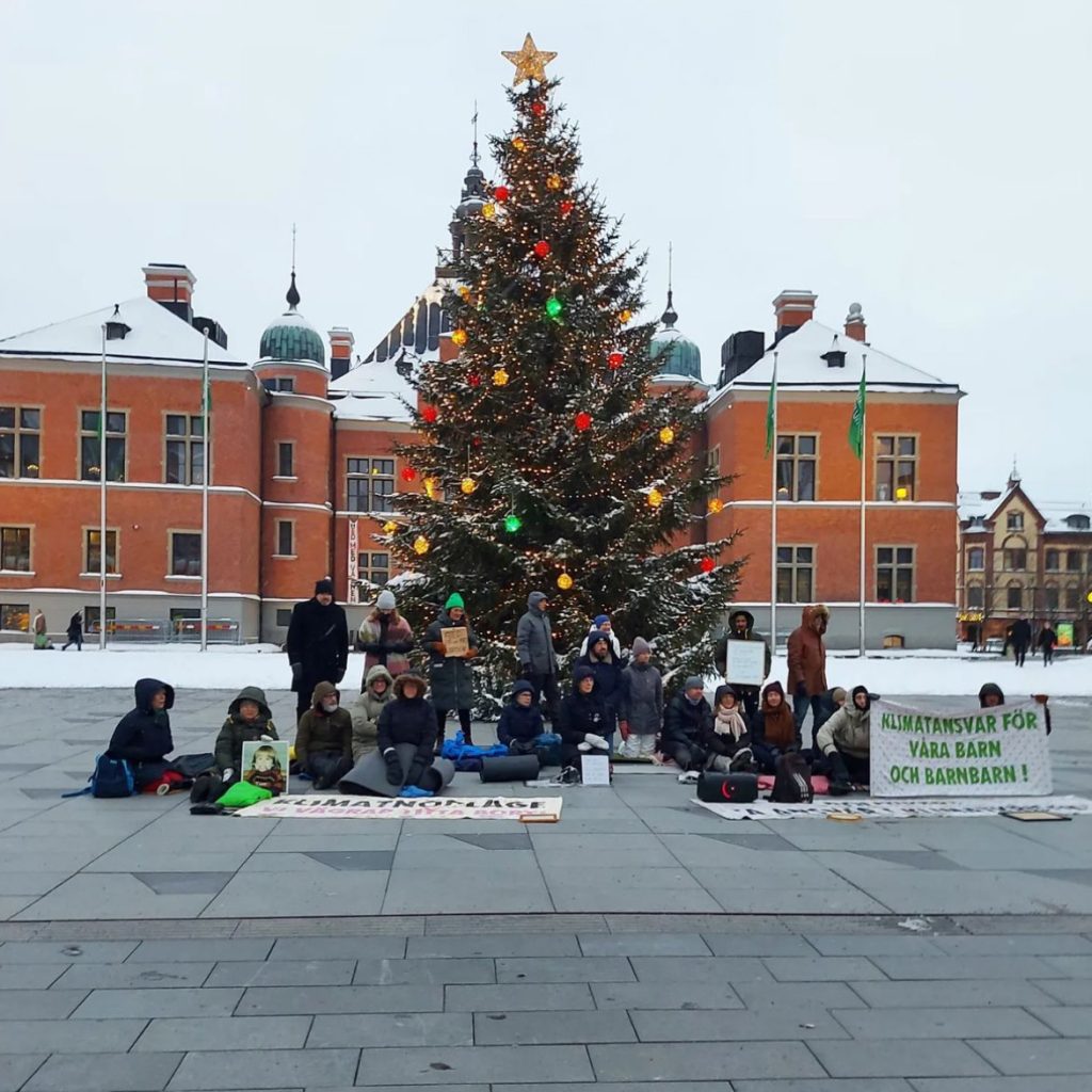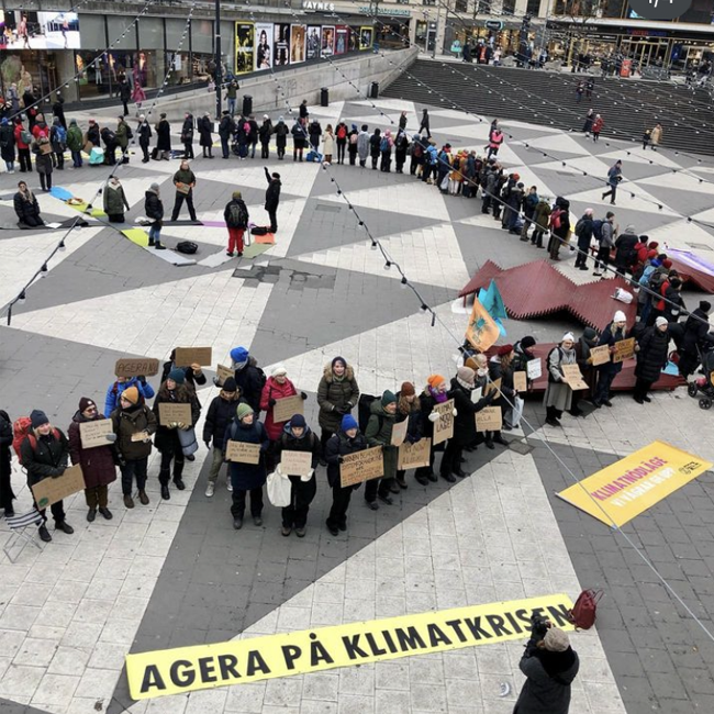 Dagens protest hölls utanför Folkhälsomyndigheten, som vi uppmanar att göra mycket mer för folkhälsan med hänsyn till klimatkrisen än vad som görs idag. 11 december, 2023