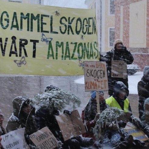 Rebellmammor tillsammans med Extinction Rebellion och Greenpeace mot svensk skogspolitik inför EU-ministrar den 18 april.