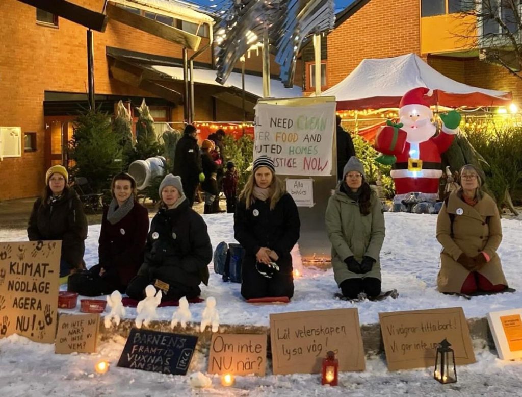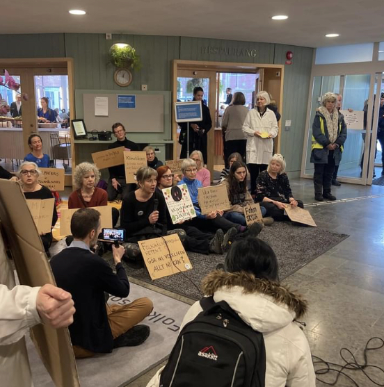 Rebellmammor på Ekerö demonstrerade på Nobledagen den 10 december, 2023, för att uppmärksamma vetenskapens ansvar för att kommunicera om klimatkrisen.
