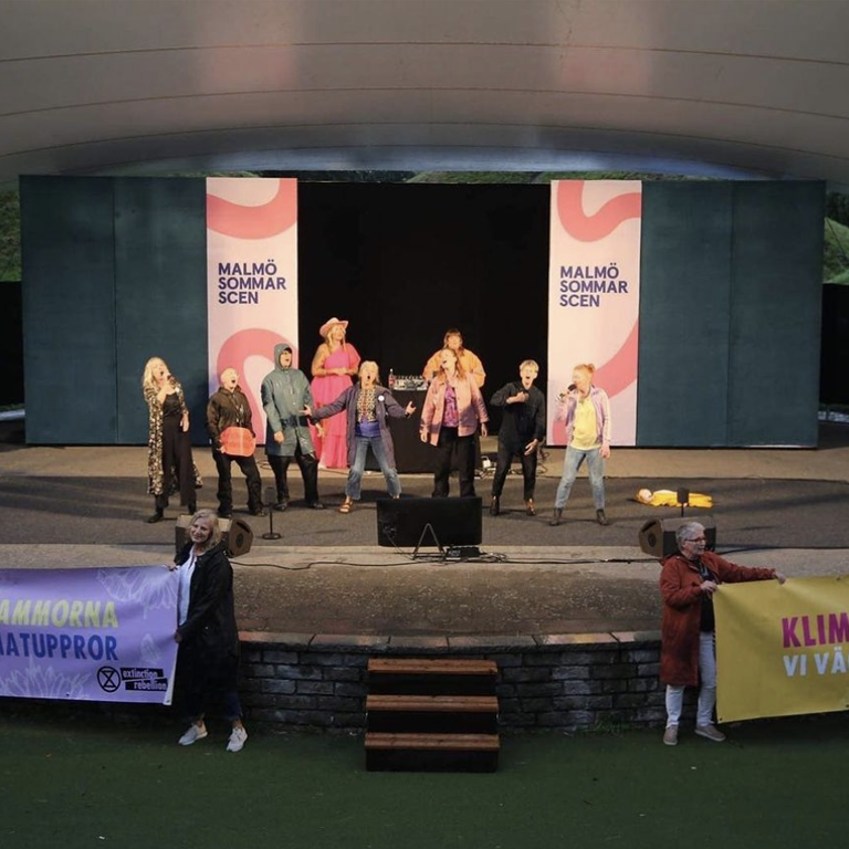 Rebellmammor sjunger klimatbudskapet på Malmö Sommarscen den 24 juli, 2023.