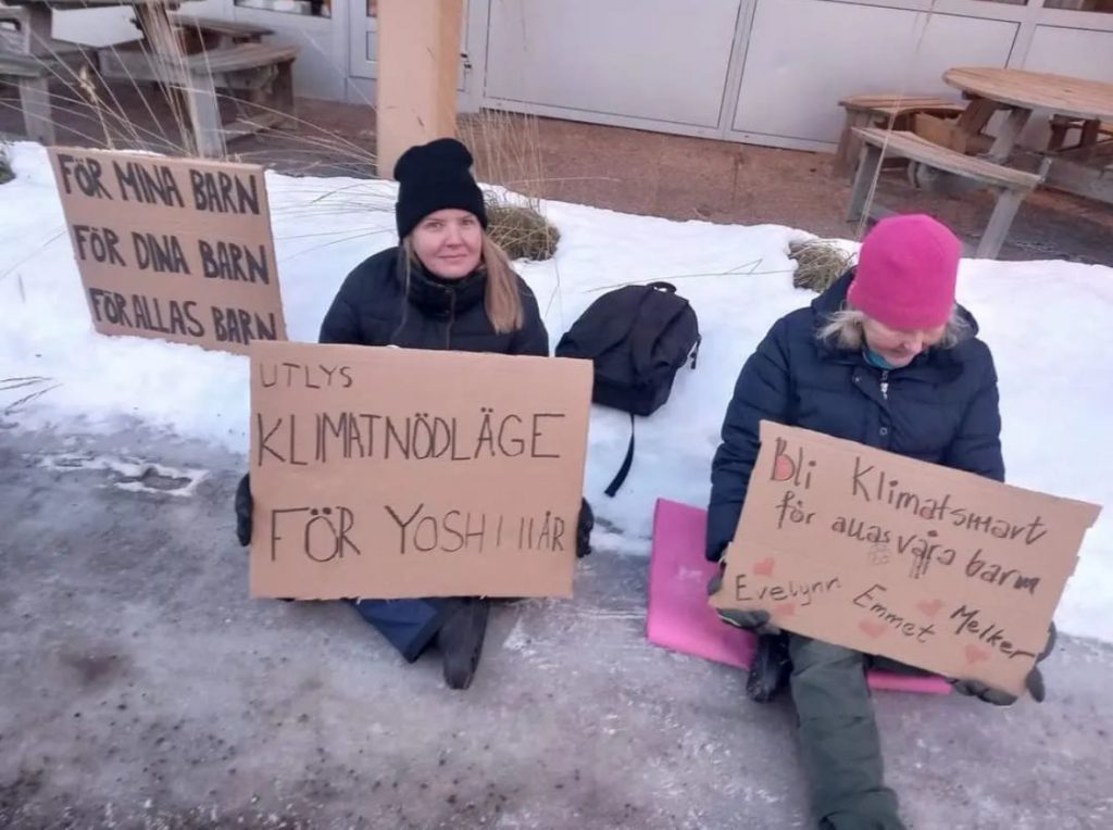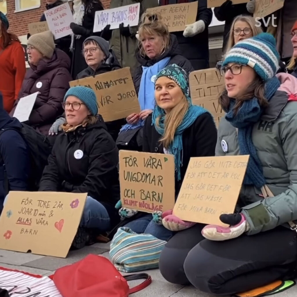 Rebellmammorna deltog vid överlämnandet av Greta Thunbergs Klimatboken till alla riksdagsledamöter den 25 januari 2023