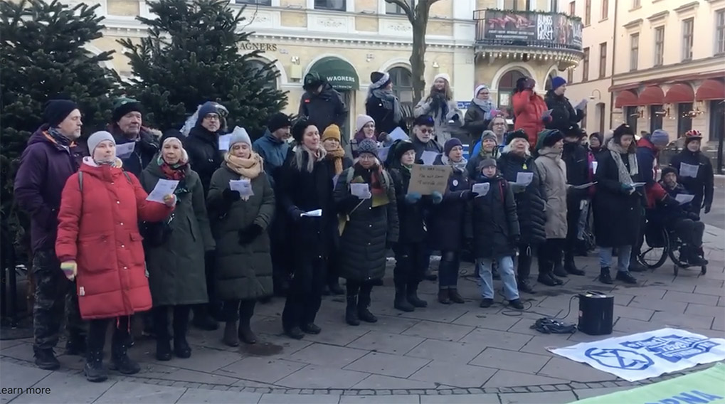 Rebellmammor i Göteborg sjöng julsånger med klimatbudskap den 4 december, 2023.