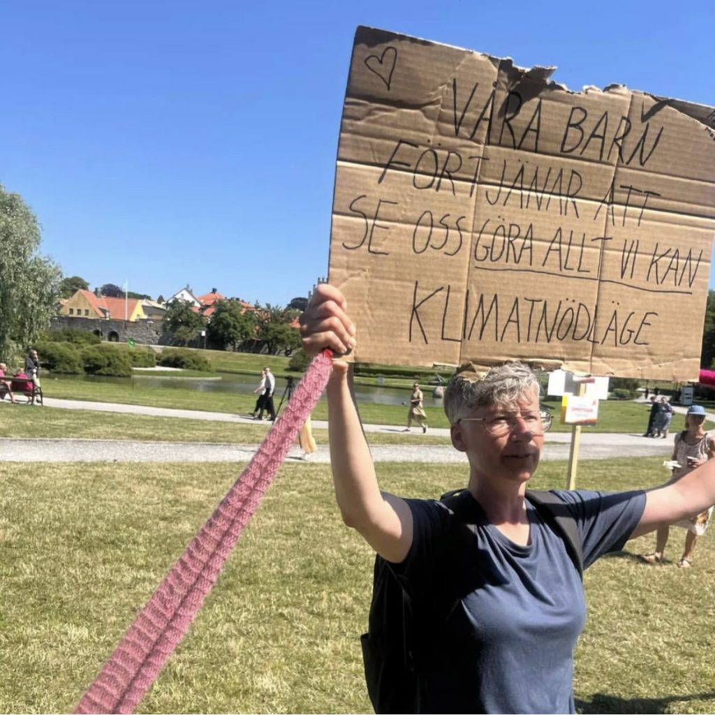 ”Klimatkrisen tar inte semester!” Rebellmammor demonstrerade i Halmstad den 29 juli, 2023.