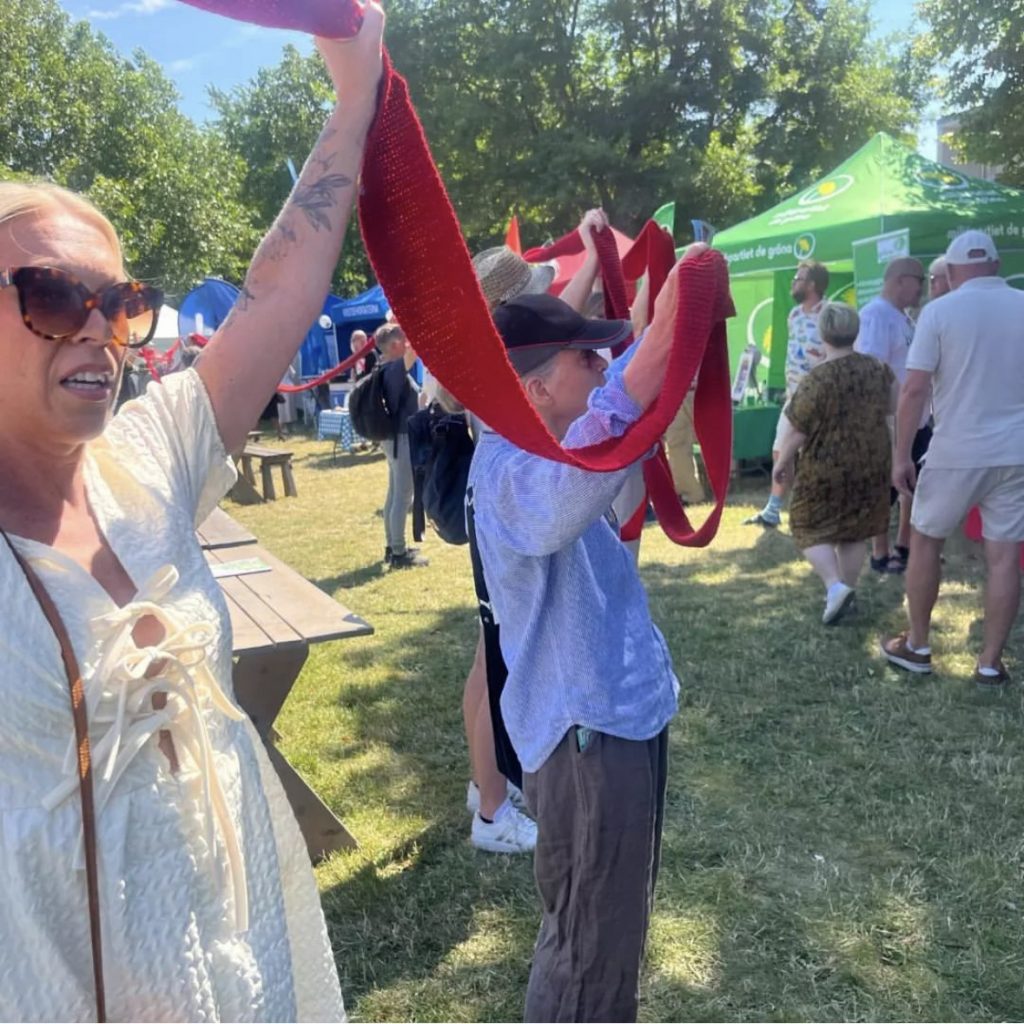 Den 21 april, 2024, på Sveriges Overshoot Day, omringade Rebellmammorna Sveriges riksdag med en 4.2 km lång röd halsduk, för att markera att här går vår gräns. Halsduken har stickats av tusentals kvinnor runtom i Sverige. Samtidigt kläddes statyer i röda halsdukar i många städer och orter på andra håll i landet. Mer information om manifestationen hittar du här
