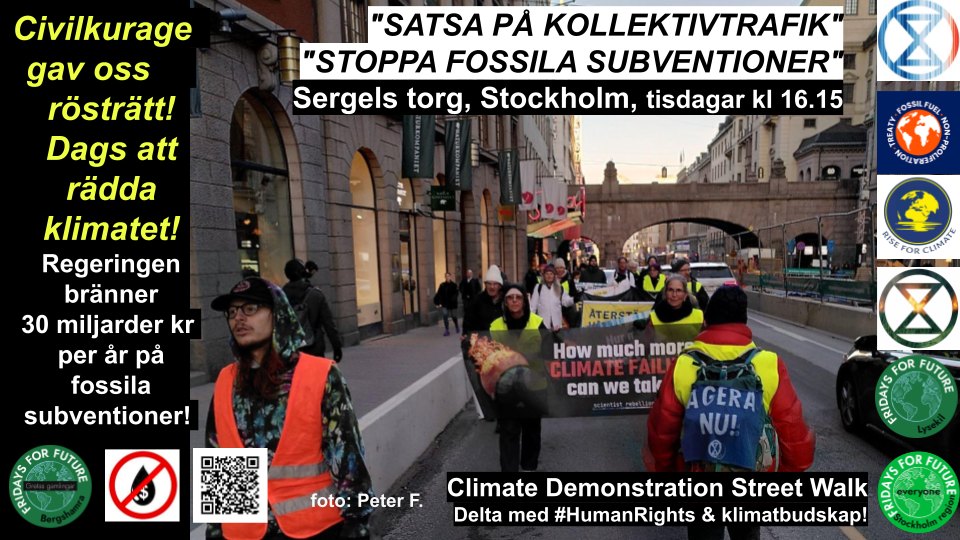 Vi är en grupp oroliga och dedikerade människor, varav vissa engagerade i Exctintion Rebellion Stockholm, Scientist Rebellion Stockholm, Mothers Rebellion Stockholm, Grandparents For Future, Fridays For Future med flera, som varje tisdag går långsamt på gatan och demonstrerar. Häng med du med!