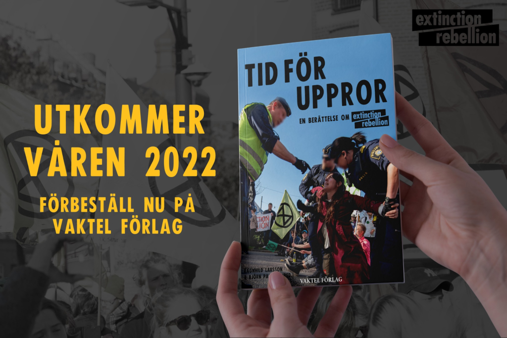 I vår kommer “Tid för uppror – En berättelse om Extinction Rebellion” ut på Vaktel Förlag. I den här boken får du följa vanliga människors väg till klimataktivismen, en inblick i rörelsen och en förståelse för hur vi kan åstadkomma den nödvändiga förändringen tillsammans. Du kan redan förbeställa den. Varför inte ge bort den till vänner och bekanta.